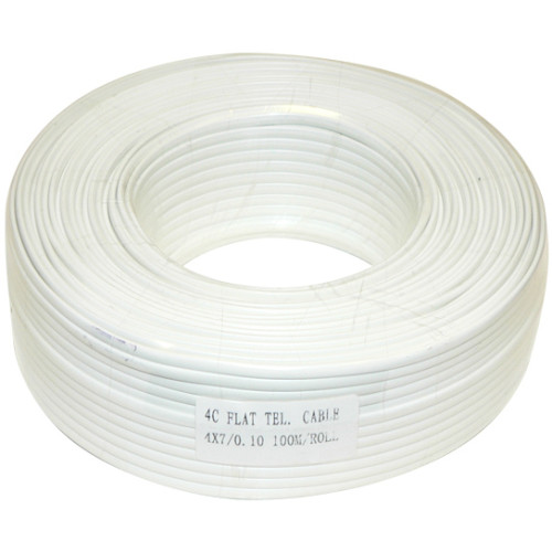 4 eres, lapos távközléstechnikai vezeték, fehér, 100m/tekercs.
