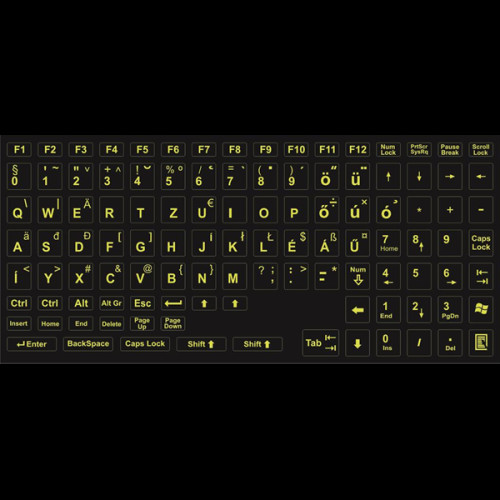 Billentyűzet matrica HU világító világos zöld betű fekete alapon STICKERS_HU_GREEN KSH szám: 4821901000