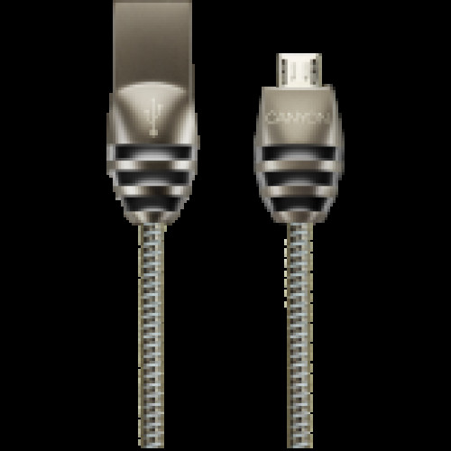 • CANYON Micro USB 2.0 standard cable, Power & Data output, 5V 2A, OD 3.5mm,  metallic Jacket, 1m,  gun color CNS-USBM5DG