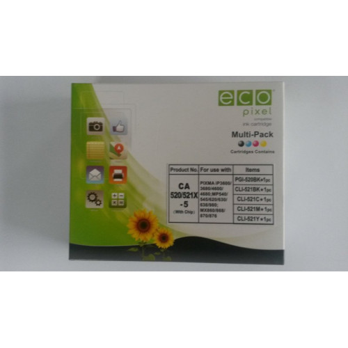 CANON CLI521 Multipack BKCMY 5 db-os (For Use) ECOPIXEL BR PGI520BK,CLI521BK,CLI521C,CLI521M,CLI521Y 2934B010FUEC2