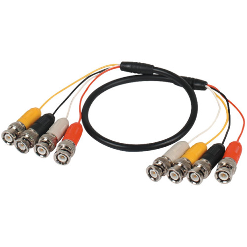 EUROVIDEO EVA-WC414 BNC dugós patch kábel 4 videojel átkötésére, öntött csatlakozók színjelöléssel.