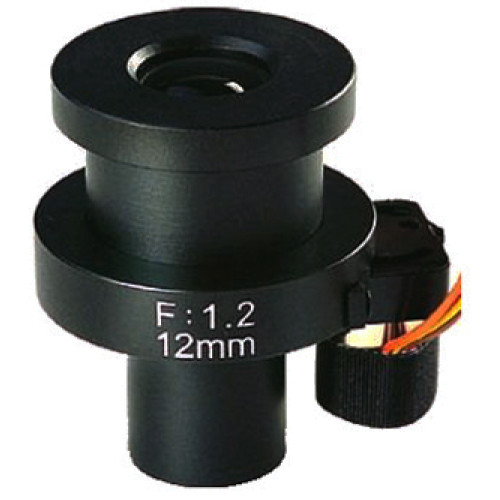 - ISO 9001 minősített gyártás. 12mm, 22°, F/1.2, 1/3 col, DC vezérelt írisz, M12x0.5.