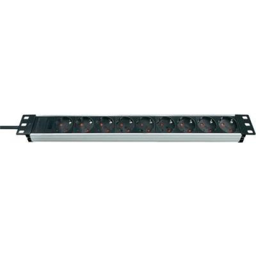 Hálózati elosztó 19 colos rack szekrénybe, 9 részes, alu/fekete, Brennenstuhl 1390007009