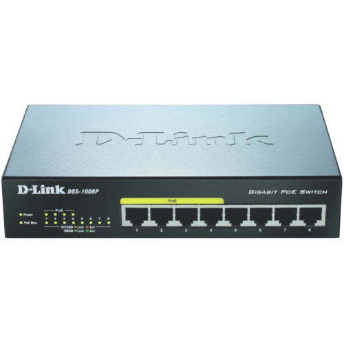 D-LINK DGS-1008P/E 8 Port Gigabit Ethernet PoE Switch 8xport.Fémház.8xGigabit.4xPoE ports