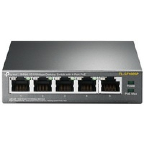 A TL-SF1005P egy 5 portos ,10/100Mbps ,hagyományos switch, ami nem igényel külön beállítást és 4 PoE-t támogató (Power over Ethernet) porttal rendelkezik.