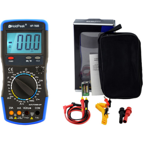 • HOLDPEAK 760B Digitális multiméter, VAC, VDC, AAC, ADC, ellenállás, kapacitás, frekvencia, hőmérséklet.