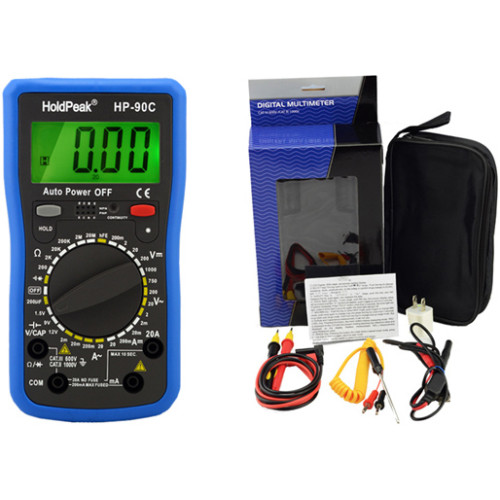 HOLDPEAK 90C Digitális multiméter, VDC,VAC,ADC,AAC, ellenállás, kapacitás,dióda,hFE,szakadás,elemteszt.