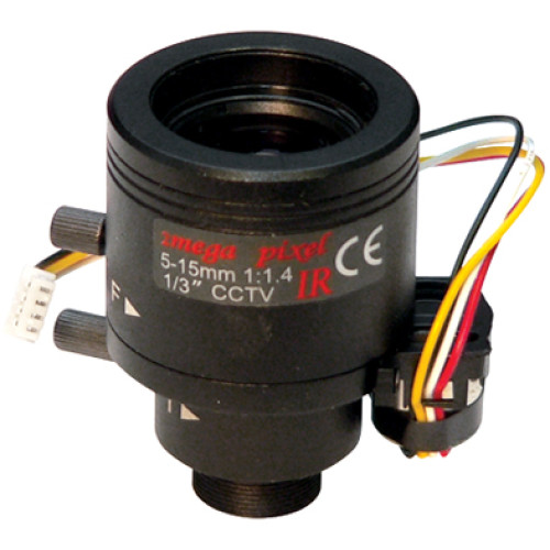 - ISO 9001 minősítés. 5-15mm, 41° - 19°, F/1.4, 1/3 col, DC vezérelt autoírisz, IR, Megapixel, M12x0.5.