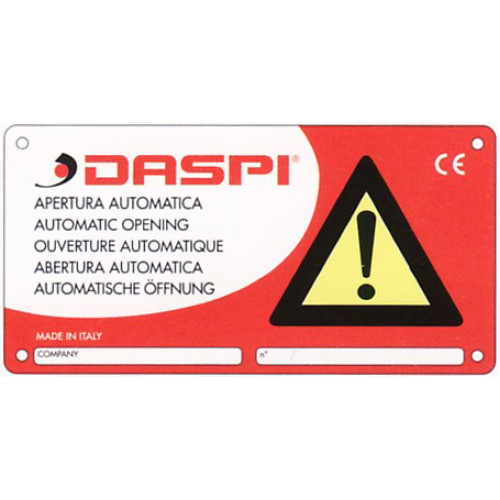• DASPI CARTELLO ATTENZIONE Automata kapu működésére figyelmeztető, fémtábla, 5 nyelvű.