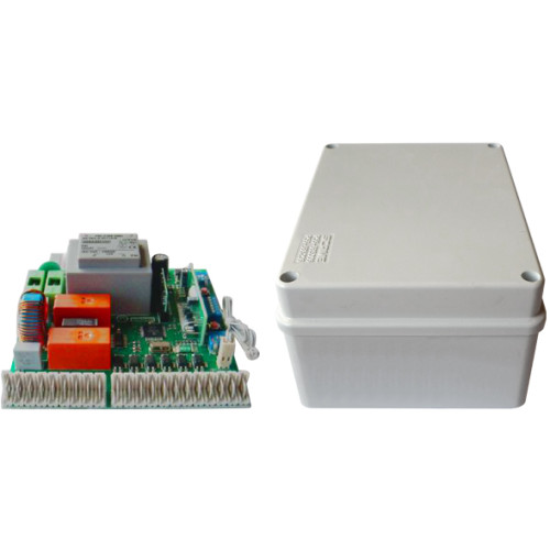 - Méretei: 153mm x 110mm x 66mm. Egymotoros vezérlő tolókapukhoz, 230VAC, 433MHz vevő.
