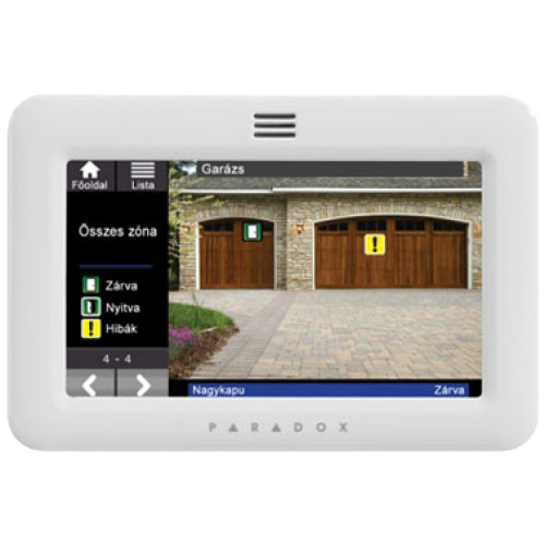 - Méretei: 144mm x 96mm x 14mm. Multifunkciós, 5 colos, érintőképernyős, TFT kezelő Paradox EVO/MG/SP központokhoz, fehér.
