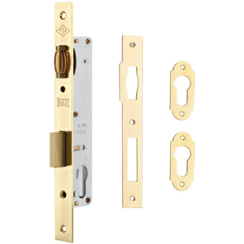 Magas minőségű bevésőzár kilincses fa és alumínium portál ajtókhoz. Szabványos hengerzár betéttel szerelhető. Nagy biztonságú, kilincs- és ráfordító nyelves kivitelű, hengerzár rozettákkal.