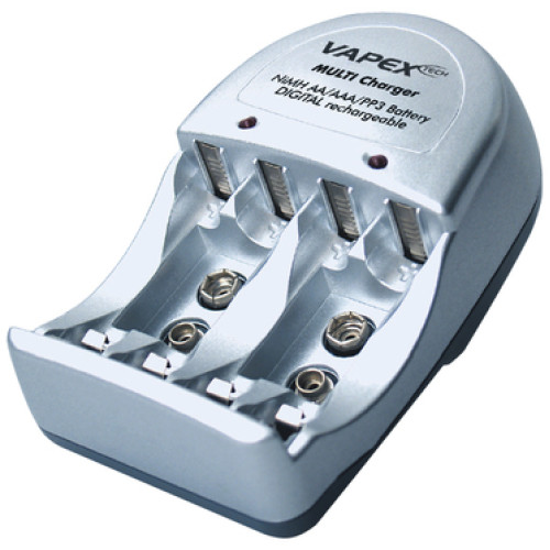 • VAPEX VTE200 Univerzális töltő AA, AAA és PP3 méretű NiMH akkumulátorokhoz, LED kijelző.